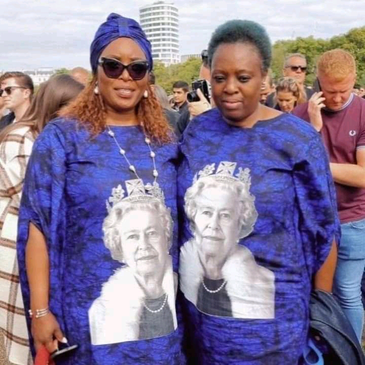 The group of women had the late queen’s portrait on the front of their attire, albeit donning various colors of the same fabric.