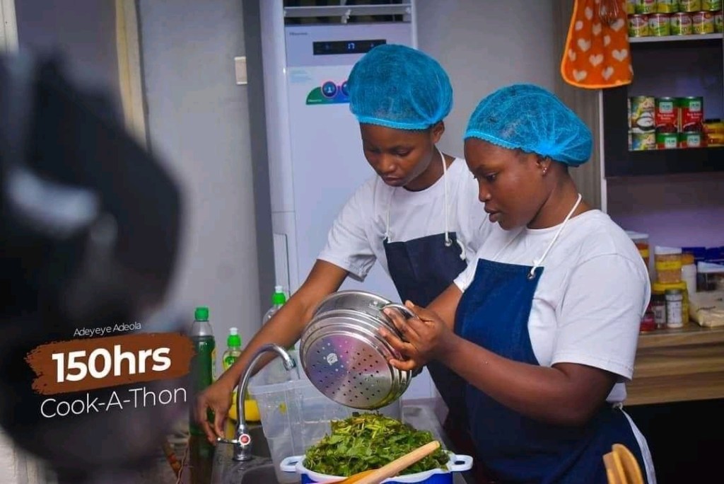 Adeola Adeyeye, an Ondo chef, has started a 150-hour cook-a-thon in an effort to surpass Hilda Baci’s 93 hours, 11 minutes-long record for the longest cooking marathon.